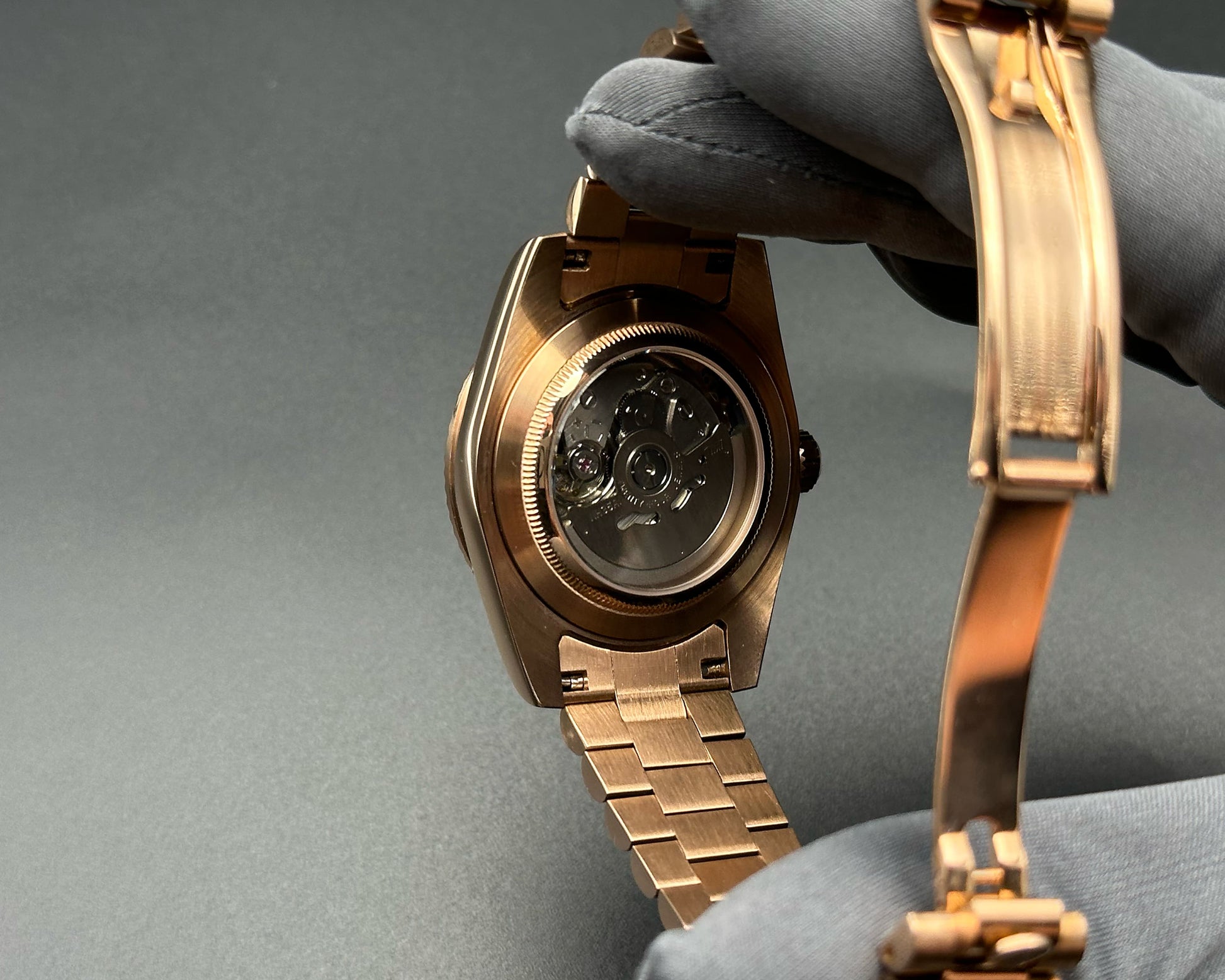 La véritable star de notre Seikojust est sans aucun doute le cadran vert marbré, une œuvre d'art en soi. Chaque détail de la marbrure capte la lumière d'une manière unique, rendant chaque instant d'utilisation une nouvelle expérience. Malgré son apparence audacieuse, cette Seiko mod maintient une esthétique classique, faisant de ce garde-temps un choix idéal pour toute occasion.